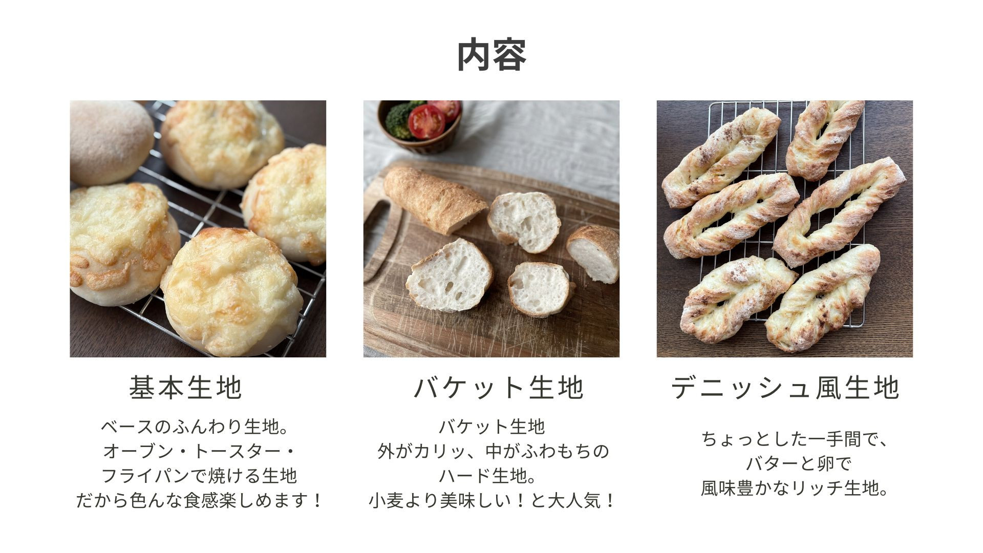 (基本生地・バケット生地・デニッシュ風生地)